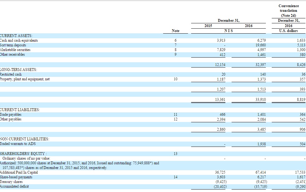 Look at the balance sheet with the first two columns in Israeli Shekels and the final column translated to U.S. Dollars: