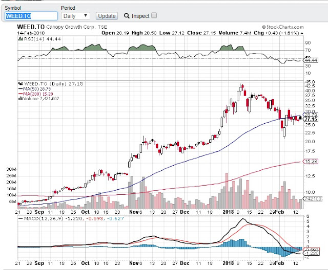 Last week in "Buy WEED When There Is Blood On The Streets" we disclosed that we went long on Canopy Growth Corporation (TWMJF) (WEED.TO). When it popped over $30 it hit our target, but we quickly reloaded on the dip from there as disclosed in "Going For A Second Round On WEED" last Wednesday. The stock in Canada finished strong that Friday with a price of $28.17 at close. Despite a dip so far this week, we believe Canopy will do very well in the near-term with a $35 target and are more convinced of this than ever after excellent financial results. If you like our picks make sure to follow our blog by clicking the follow button on the top of the left hand panel. We are up to 458 followers despite not giving out a lot of alerts, a fact that we think is indicative of a diligent and prudent stock picking history. If you would like to share this blog, make sure to use the URL "nasdaqnewsreports.blogspot.mx" as certain spam filters on social media don't let you post blogspot.com addresses.
